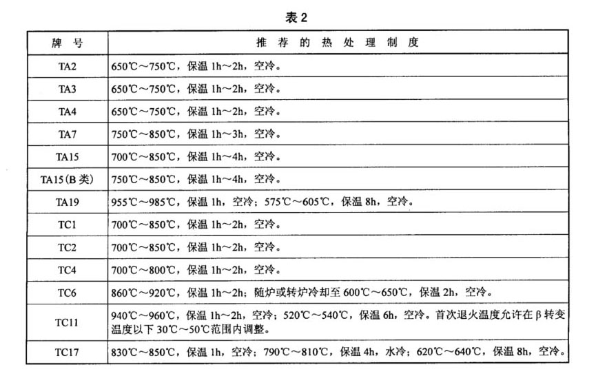 補充并調整了各牌號鈦合金試樣的推薦熱處理制度;