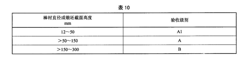 3.6.1 除B類用途的TA15鈦合金棒材外,棒材或鍛坯應按GB/T 5193的規定進行超聲波檢驗,其驗收級別應符表10的規定。